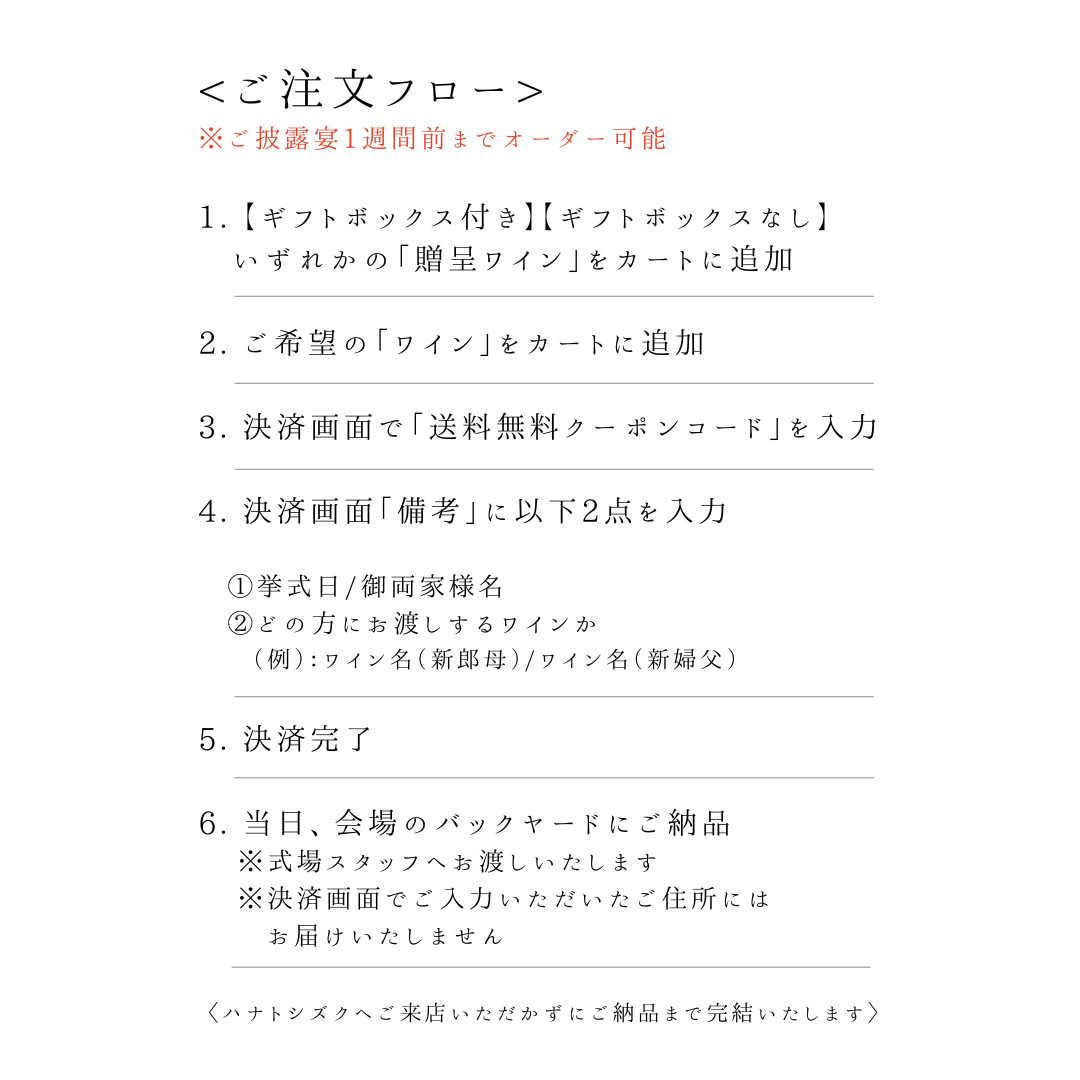 ○【贈呈ワイン専用】送料無料クーポンコード < wedding >